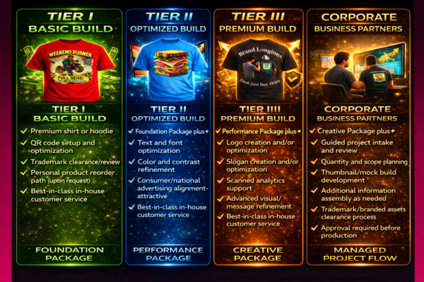 Brand Longinus builds premium garments with scannable QR code capability, themed design direction, and real customer support through the build process.